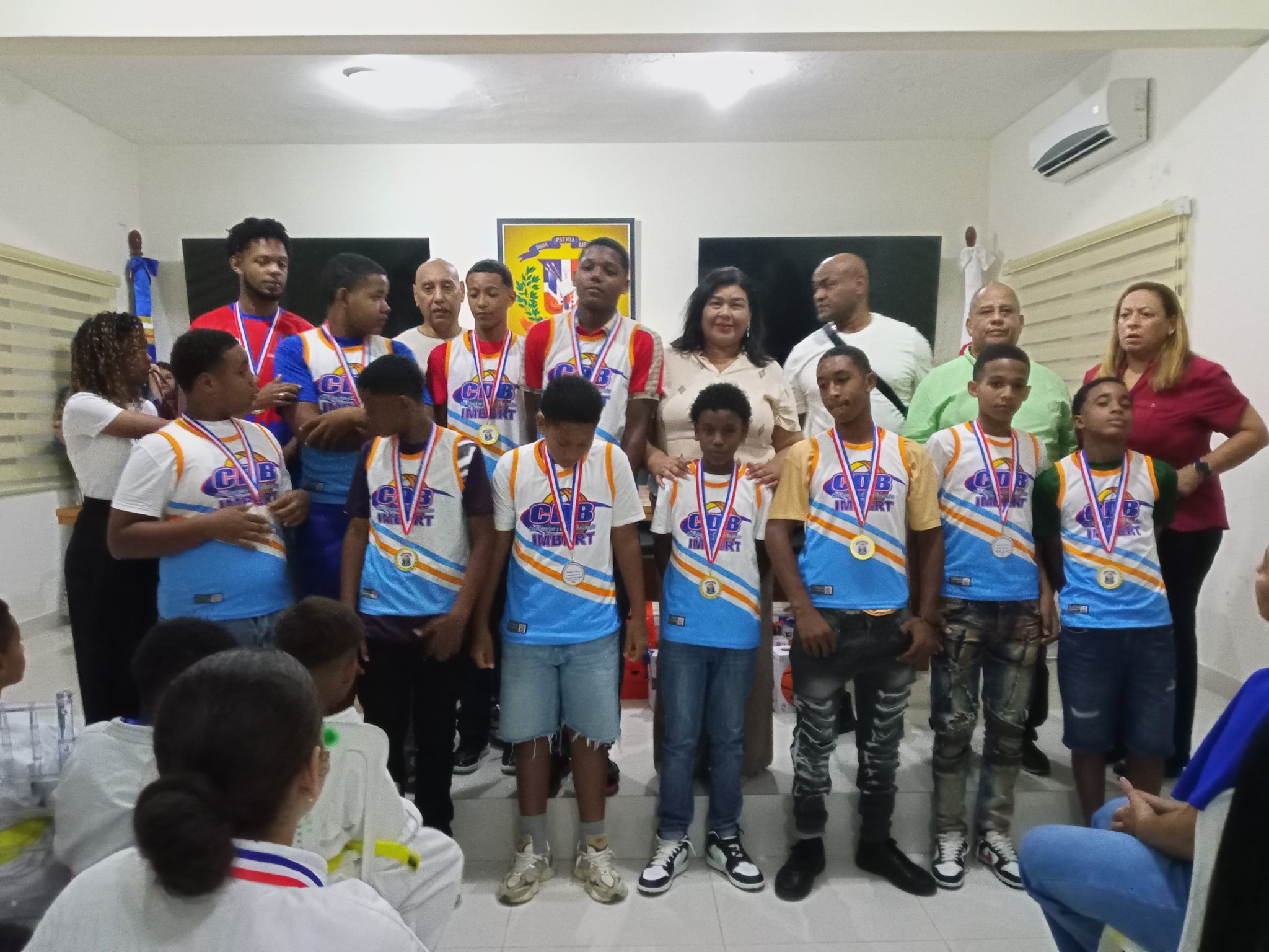 Imbert 8/11/2025-La tarde noche de hoy se celebro en los salones de la alcaldía municipal de Imbert el día de el deporte con entrega de medallas de reconocimientos a los atletas que nos representaron en playas extranjeras así como útiles deportivos departe de la leyenda nuestro Hugo Diaz al equipo de baloncesto mini basket, La Alcaldesa municipal Lic. Maria Elena Ramos entregó una placa de reconocimiento al Club Deportivo Bajabonico por su ardua labor en torno a los deportes en nuestro municipio a nombre de la Alcaldía Municipal. Estuvieron presente la directiva del Club Deportivo Bajabonico, Los Representantes asociación de baloncesto de puerto plata ( ABAPPLATA) los deportista en materia de karate y baloncesto infantil y los padres de todos estos niños