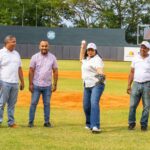 La alcaldesa María Elena Ramos, Tuvo el honor de lanzar la primera bola en este emocionante encuentro que marca el inicio de la 16.ª temporada de la Liga Nacional de Verano, dedicada al ministro José Ignacio Paliza.